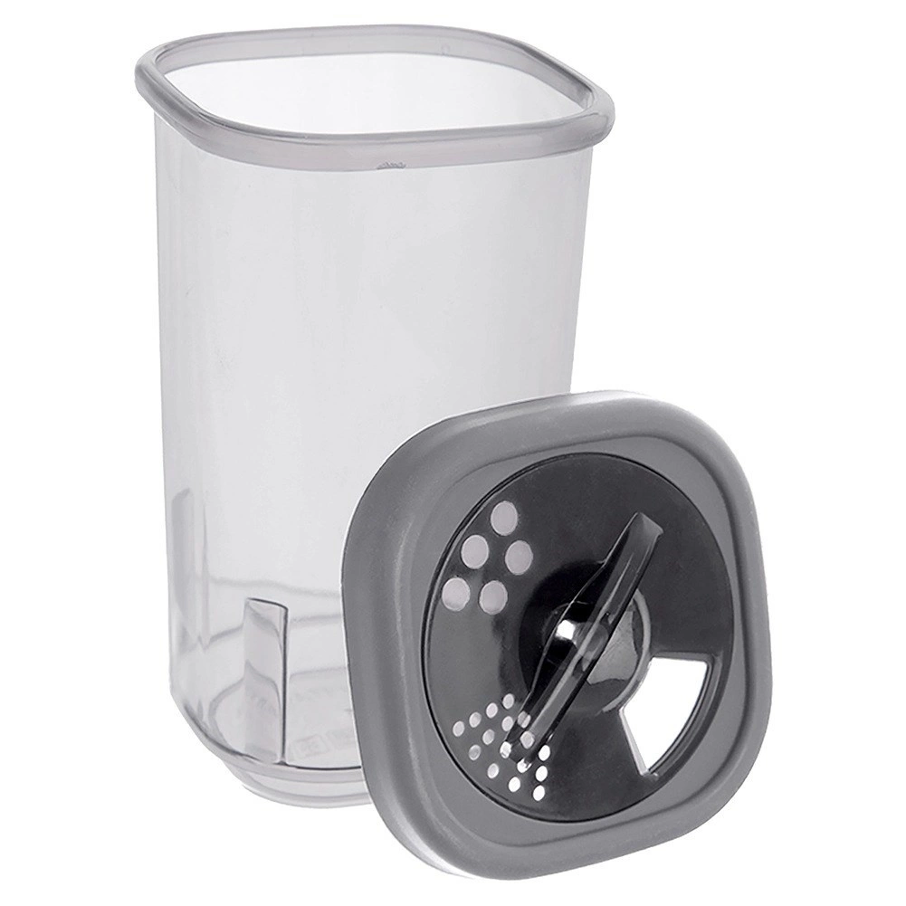Keep your spices, powdered sugar, or sprinkles neatly stored and always at hand. This jar combines clean storage with precise dosing thanks to a rotating lid with three opening options. The transparent body lets you instantly see both the amount and type of contents.