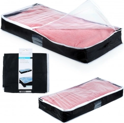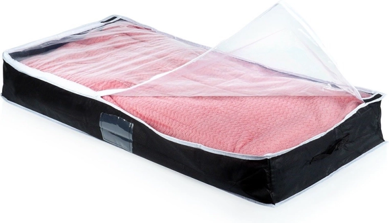 Practical storage bag with a capacity of 70 L for organized storage of bedding, blankets, pillows, and seasonal clothing. Durable polyester fabric, a transparent lid for quick viewing, a double zipper for a tight seal, and a practical handle for easy carrying. Ideal for closets and under the bed.