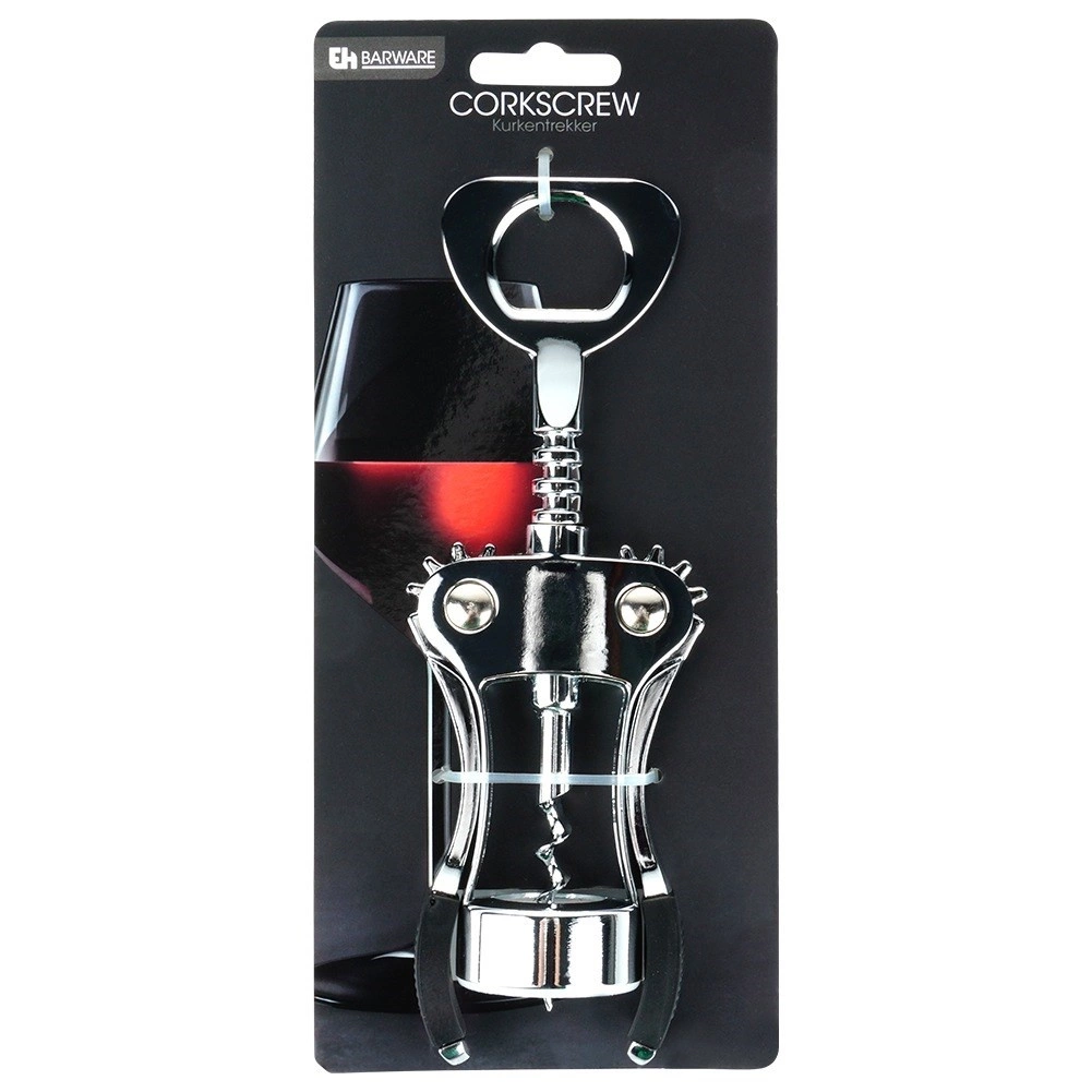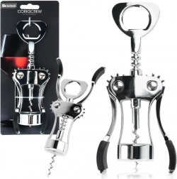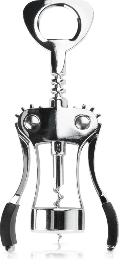 The universal wing corkscrew combines classic design with robust metal construction. The spiral worm inserts smoothly into the cork, and the lever arms let you pull it out easily without unnecessary force. The top section also serves as a bottle opener for crown caps, so you can open both wine and beer with a single tool.