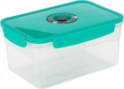 Keep your food fresh longer with this 2.3 l vacuum container measuring 23 × 16 × 11 cm. Thanks to the integrated valve in the lid, you can easily extract air (using a manual pump) and minimize oxidation and loss of flavor. The transparent body makes it easy to check contents, while the turquoise lid with four clips ensures a reliable, airtight seal.