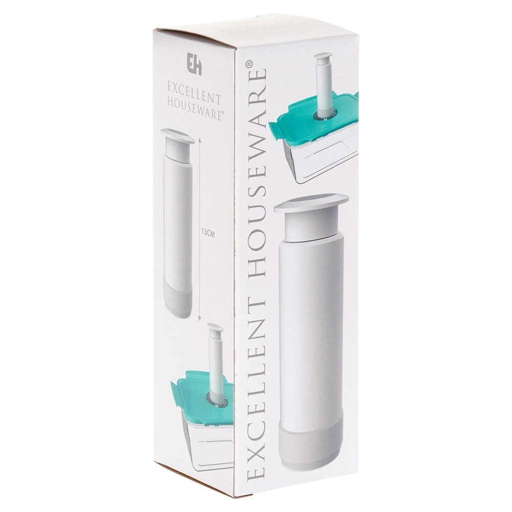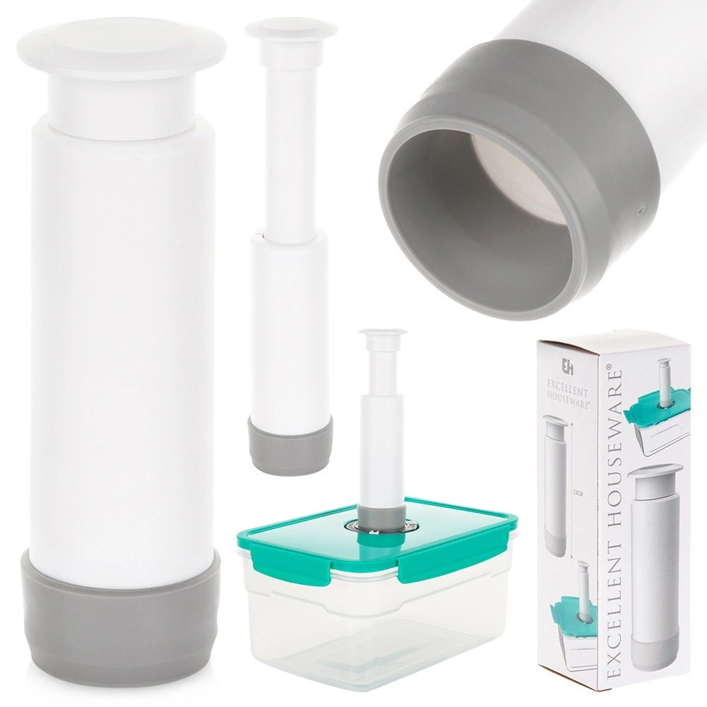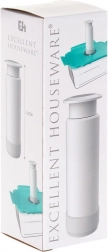 The robust white plastic body and a grey rubber base for better grip ensure reliable airtightness and comfortable use. Its compact dimensions (4 × 13.5 cm) let you take it anywhere—perfect for the kitchen, cottage, or travel.
