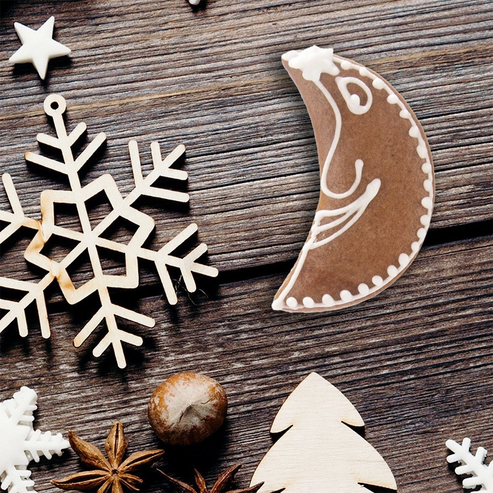 Practical stainless steel cookie cutter in a crescent moon shape for easy baking of cookies and gingerbread. Size 6 × 3.7 cm, dishwasher safe and made of high-quality stainless steel. Ideal for Christmas baking, cake decorating, and creative cutting from fondant, bread, or soft fruit.