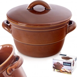The pot is perfect for homemade preparation and storage of delicacies: from fermented vegetables and cheeses in oil or brine to lard, pâtés, and other treats. Thanks to its heat resistance, you can also use it for oven baking. The well-sealing lid protects contents from air and unwanted microorganisms, while the side handles make handling easier.