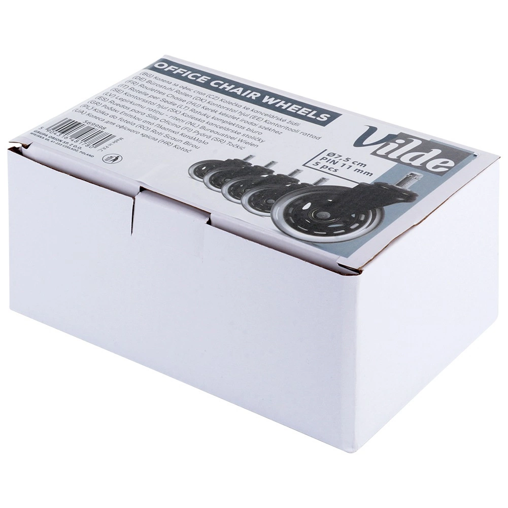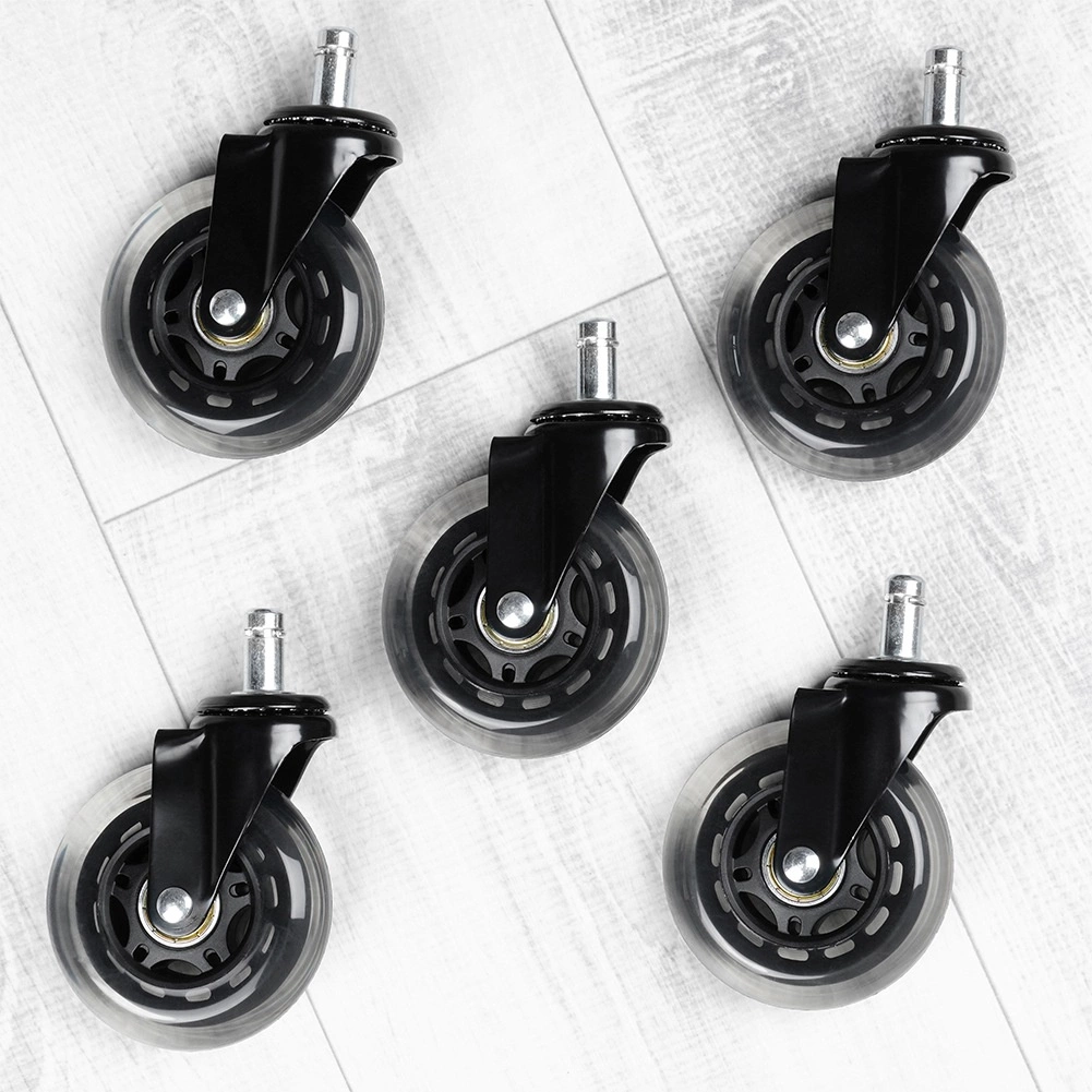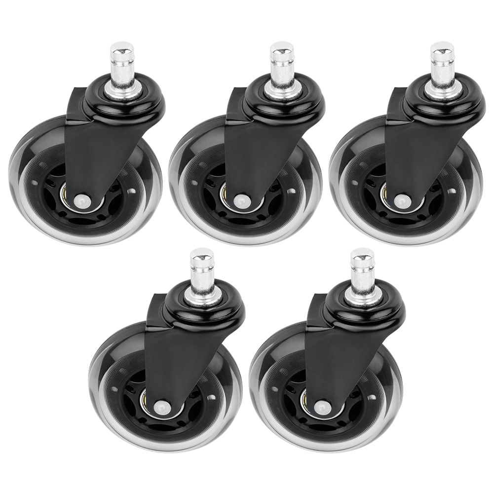 A practical set of five replacement casters for office chairs ensures quiet and smooth rolling on hard floors without unpleasant squeaking. The rubber surface is gentle on floors yet resistant to wear, so the casters withstand daily use at the office and at home.