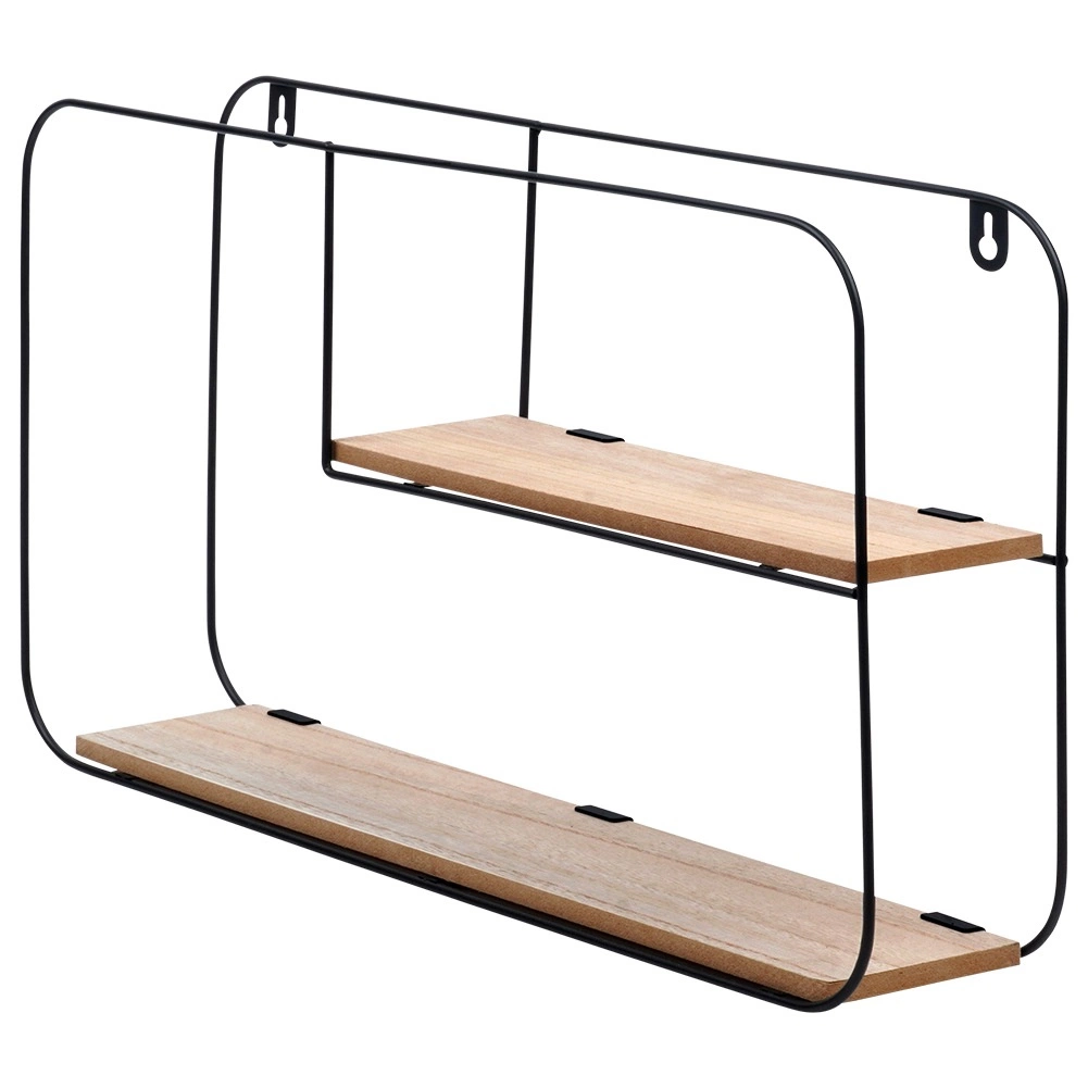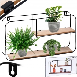 Stylish wall-mounted shelf in industrial LOFT style with two wooden tiers for decor and plants. Combines durable black metal and natural MDF, offers versatile use in the living room, kitchen, bathroom, and office, and thanks to easy installation you can mount it on the wall in no time.