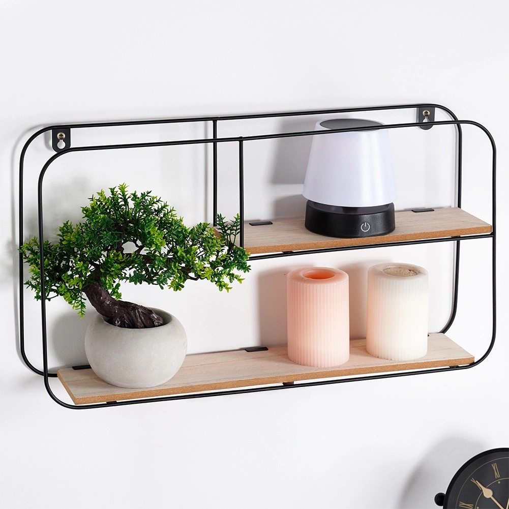This wall shelf stands out with a minimalist, industrial look and compact dimensions that suit both small and large interiors. Two tiers offer practical space to display decor, souvenirs, candles, or small planters. The black metal frame and the natural tone of the MDF shelves create a modern contrast that fits industrial, contemporary, and Scandinavian styles.