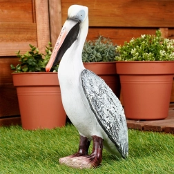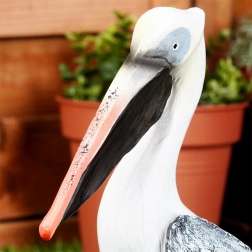 Decorative pelican statue made of durable polystone, measuring 20.5 × 10.5 × 28.5 cm, will add unique charm to your outdoor space. Thanks to meticulous craftsmanship and realistic painting, it looks very convincing. It is weather-resistant, so it can stay outside all year round. A great choice for garden, patio, and balcony.