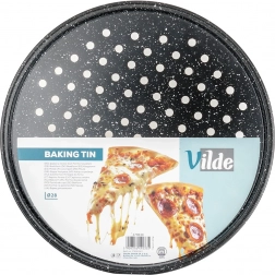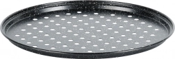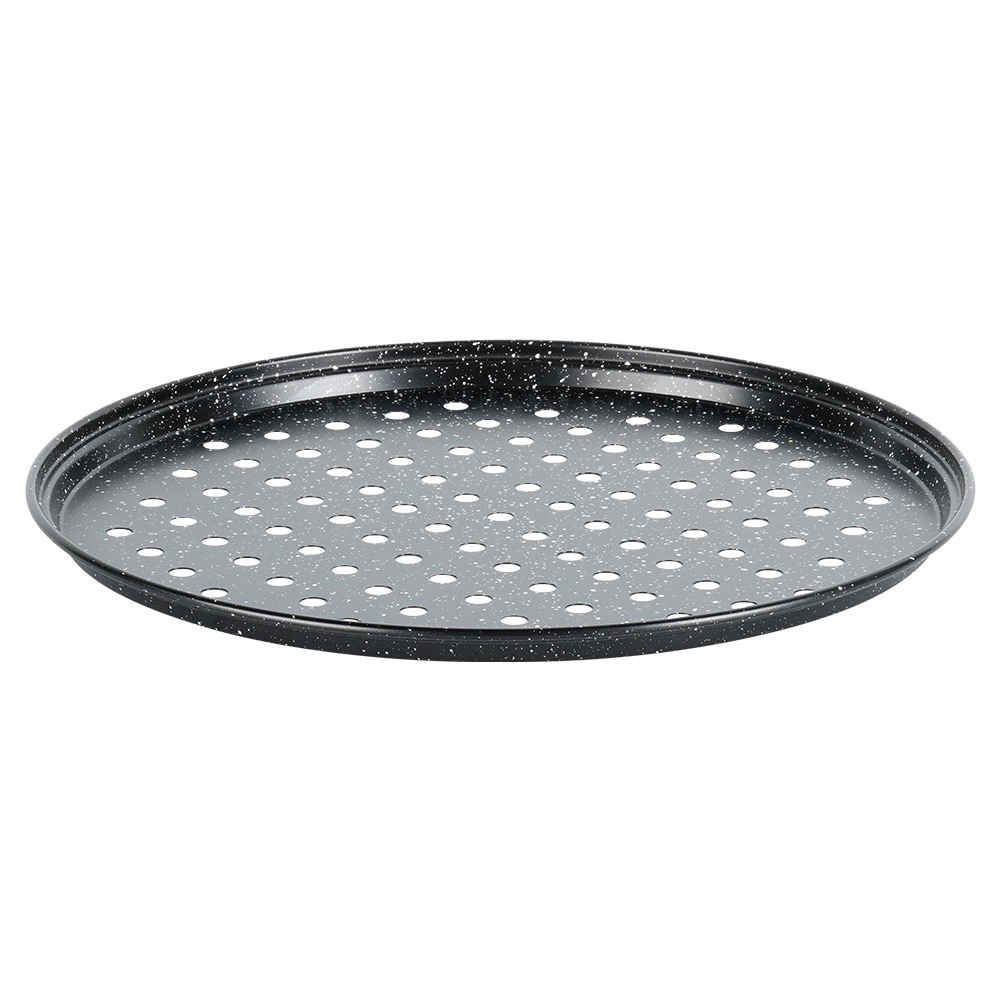 Round pizza pan with a diameter of 28 cm featuring a perforated base for a crispy crust, made from carbon steel with a granite non-stick coating. Withstands temperatures up to 230 °C, has a higher rim for easier handling and a beautiful pizza shape. Suitable for gas and electric ovens.