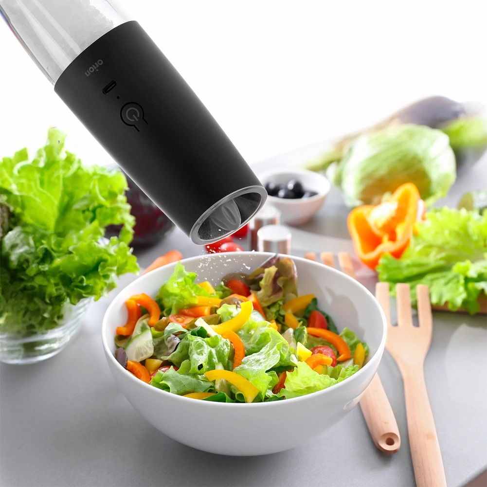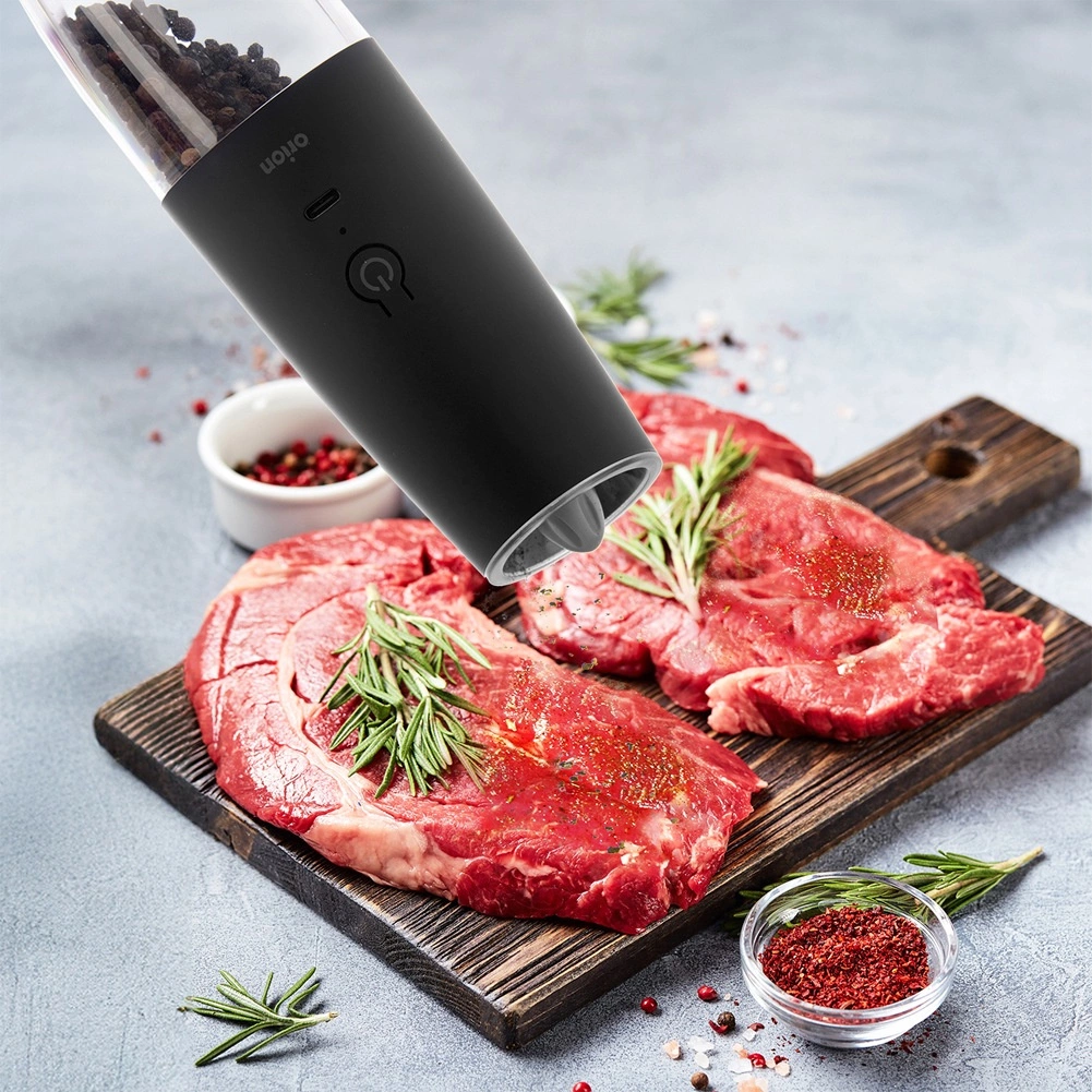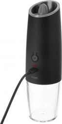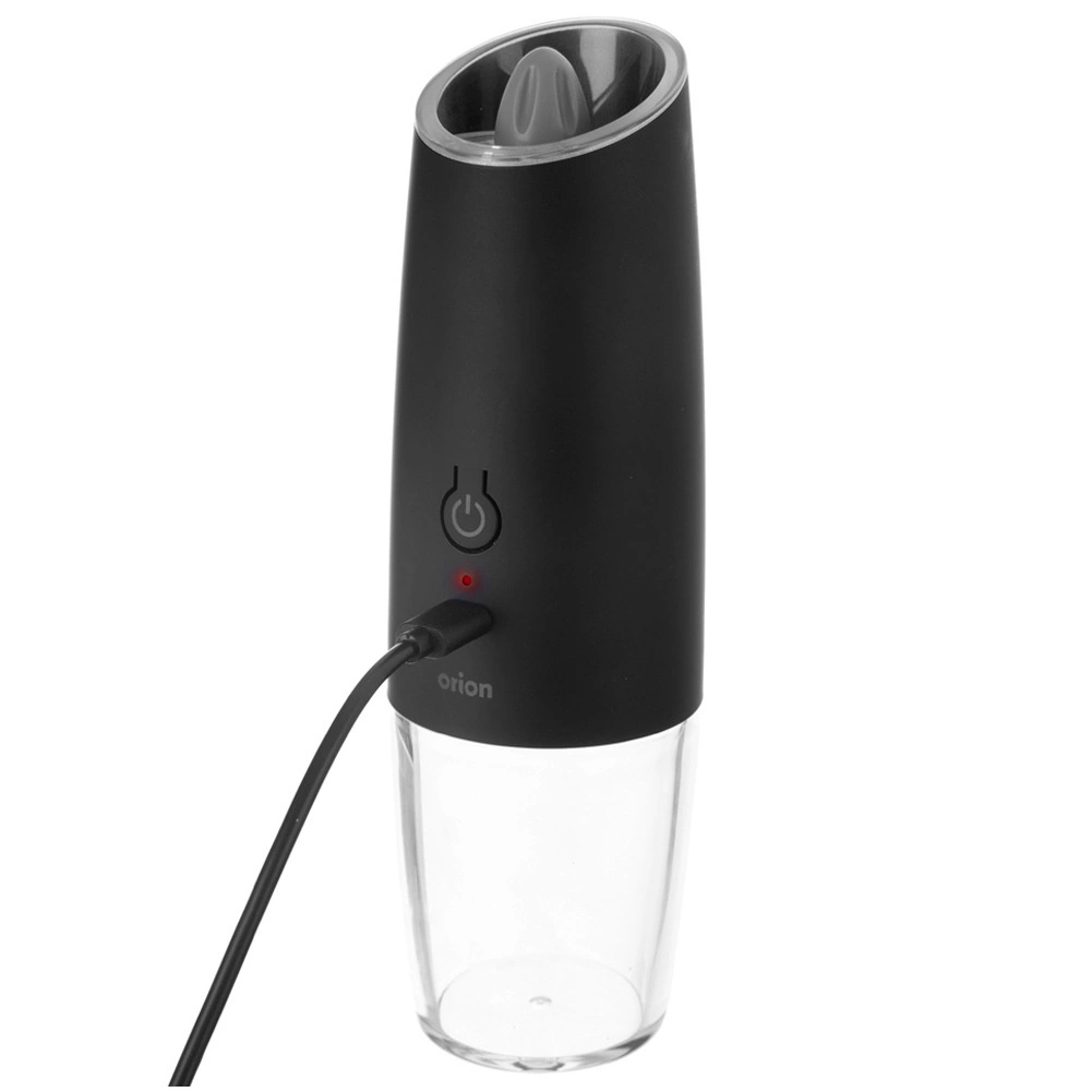 Enjoy freshly ground spices with a single wrist turn. This electric grinder with a rechargeable battery starts automatically when turned upside down, and thanks to the ceramic mechanism it handles even harder kernels. The transparent hopper lets you check the fill level easily, and the elegant black finish looks great on any counter or table.