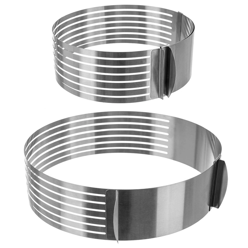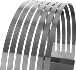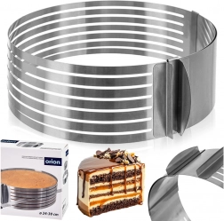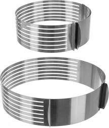 The stainless steel cake slicing ring is an ideal helper for baking enthusiasts who want to achieve perfectly even layers without complicated measuring. The adjustable clasp lets you precisely set the diameter from 24 to 30 cm, while the guiding grooves help keep the knife in one plane.