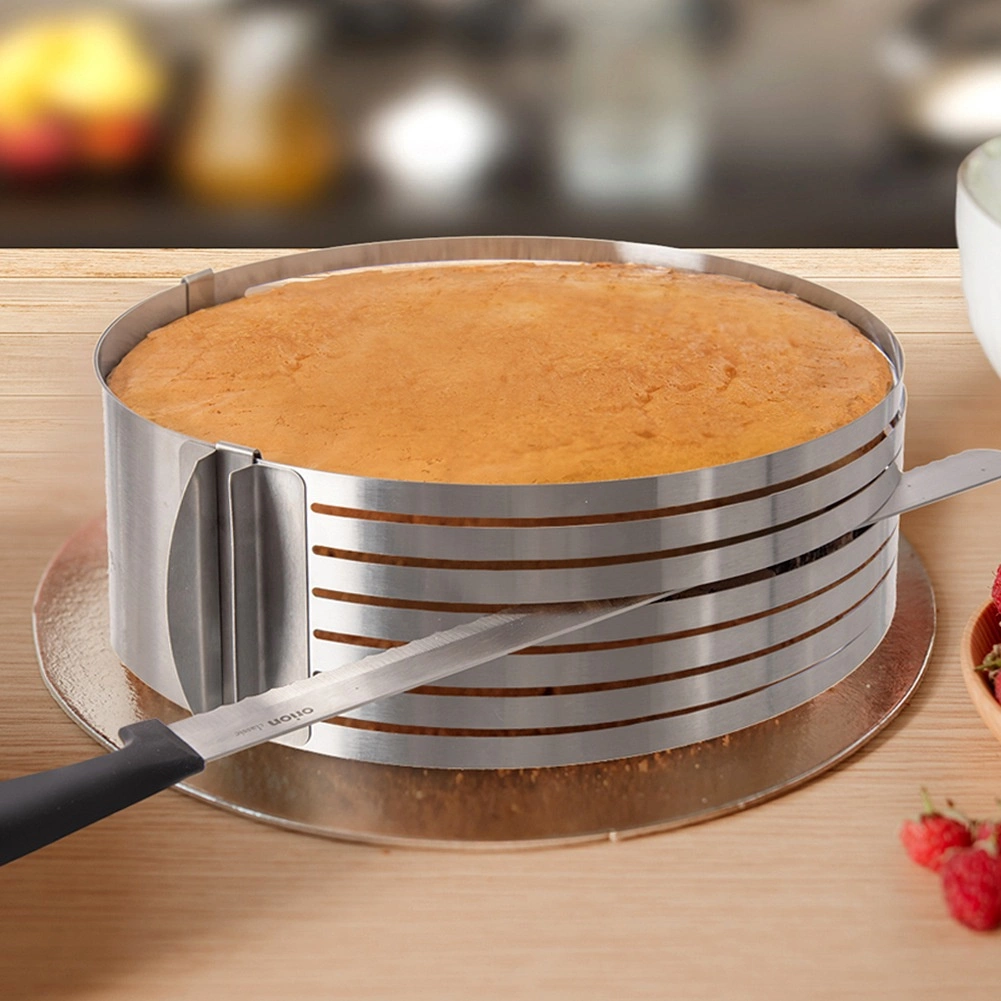 Thanks to the 6 guiding slots, you can easily slice the sponge into up to 7 even layers. Robust stainless steel offers long service life, easy cleaning, and corrosion resistance. The ring is dishwasher safe.