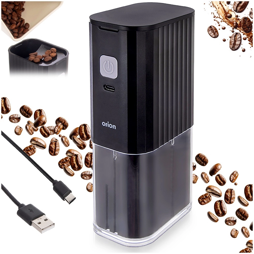 This modern coffee grinder is ideal for lovers of freshly ground coffee. Thanks to its compact dimensions of 8 × 5.5 × 16 cm, it fits any kitchen, and the battery lets you use it anywhere without a cable. USB‑C charging (cable included) and LED status indicators make everyday use convenient.