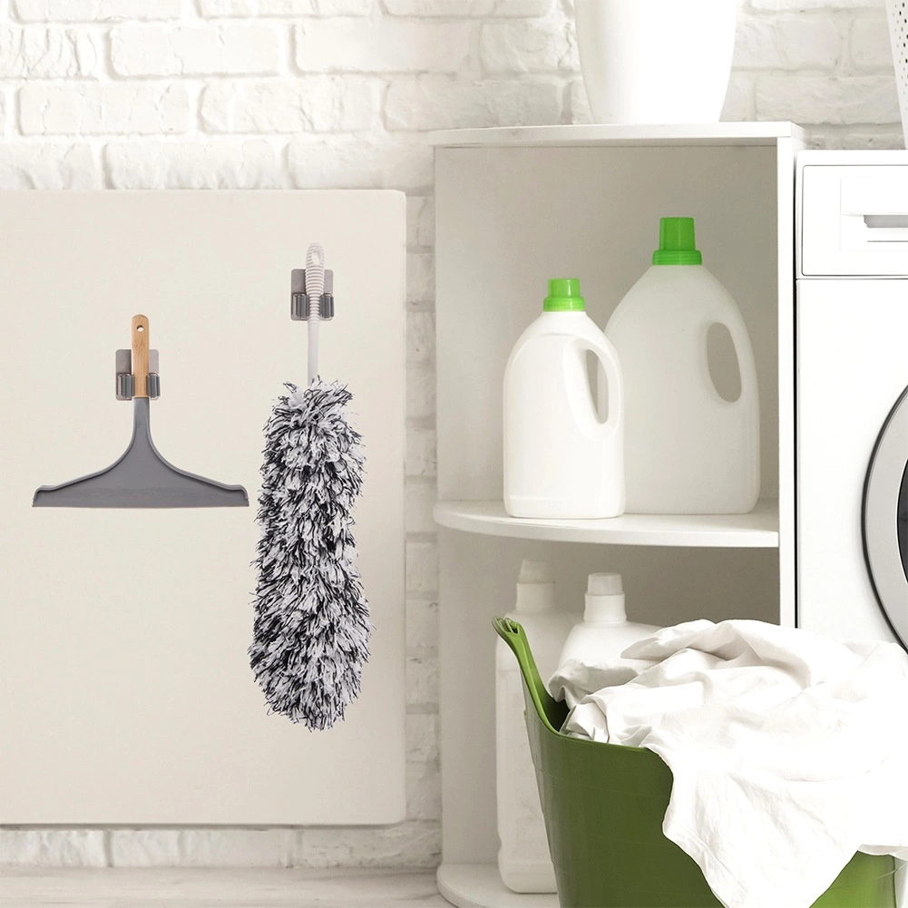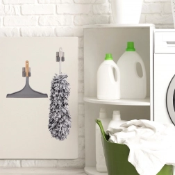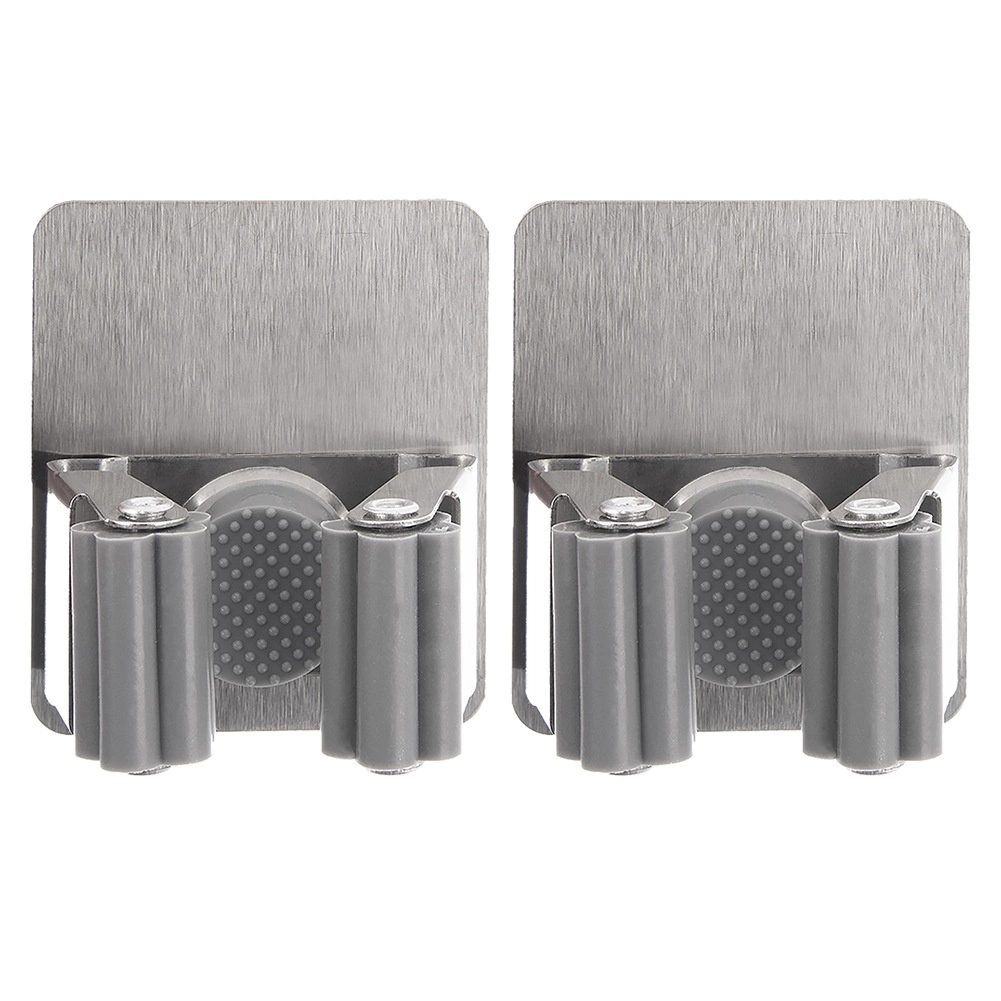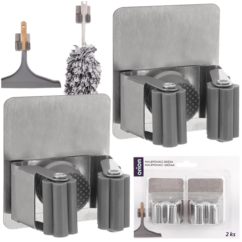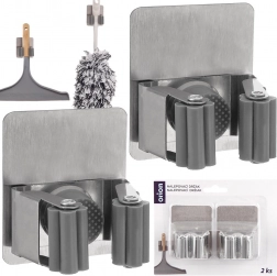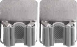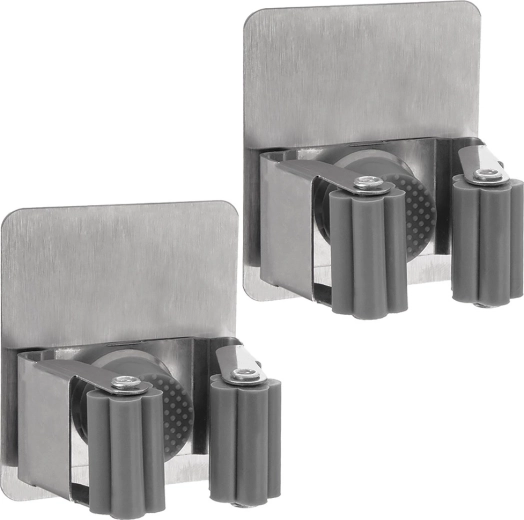 A practical set of two wall-mounted holders for mops, brooms, and tools helps keep perfect order at home or in the workshop. Each holder has an adjustable grip with anti-slip rubber, holds up to 5 kg, and fits handle diameters up to 2.5 cm. Installation is easy and drill-free — simply stick onto a clean, smooth surface. Durable stainless steel, anti-slip rollers, and space saving make this set an ideal solution for the bathroom, kitchen, hallway, utility room, or garage.
