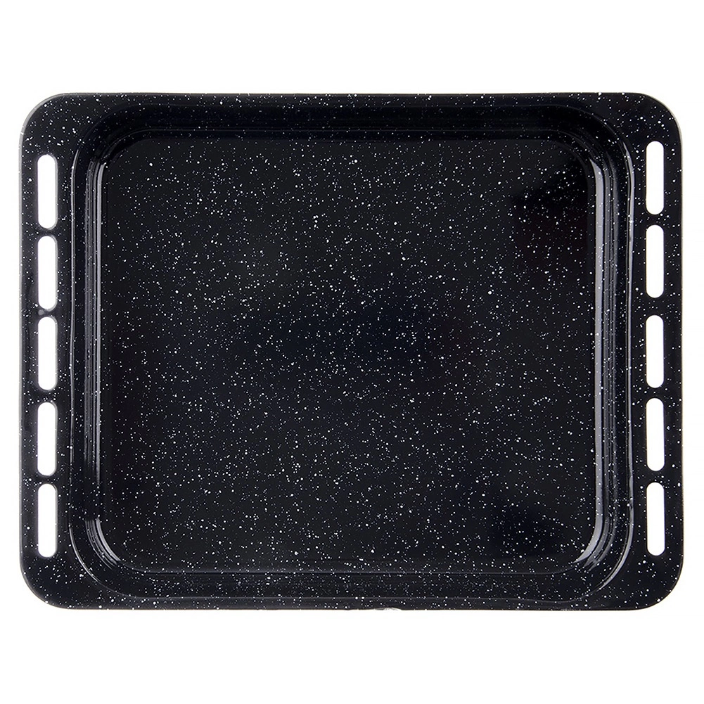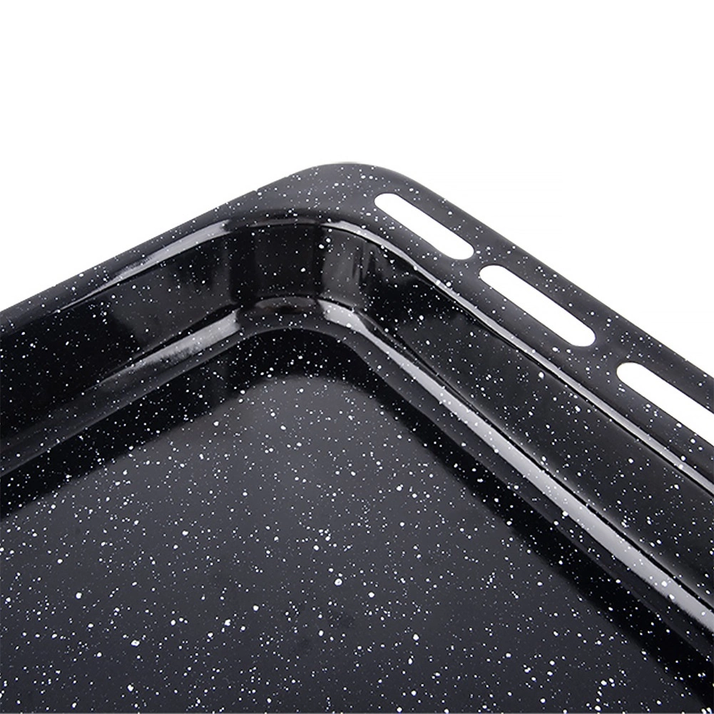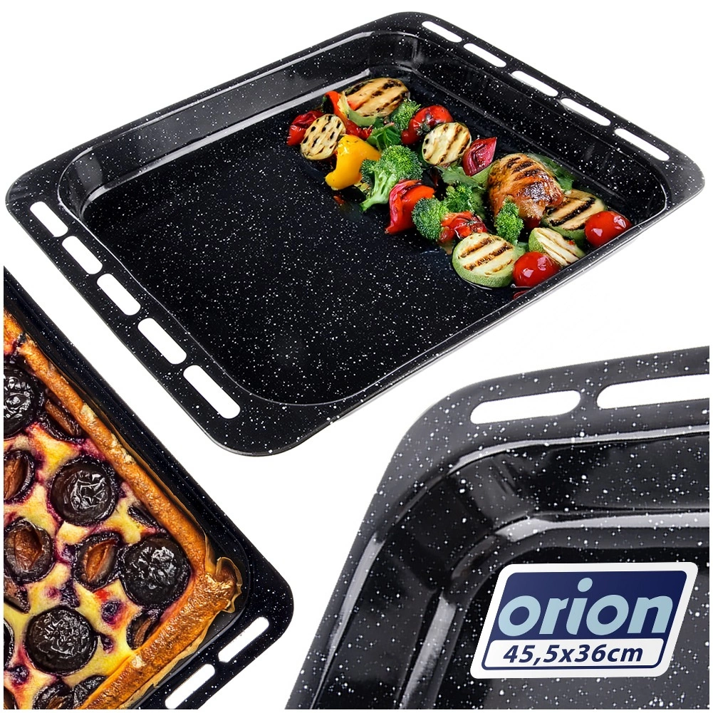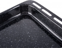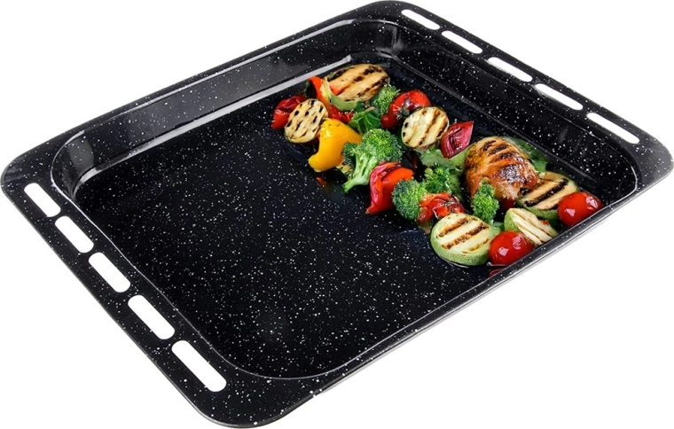 The high-quality enamel surface resists scratches and high temperatures, ensures even baking, and makes cleaning easy.