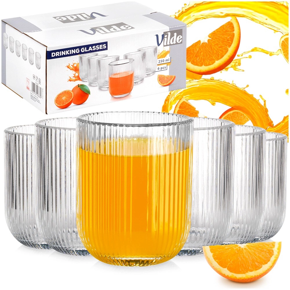 Glasses 250 ml, ribbed glass, set of 6 Vilde