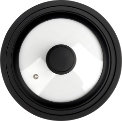 A practical 3-in-1 universal lid for pots and pans with diameters of 18, 20, and 22 cm saves space and keeps cooking cleaner. It features tempered glass, a wide silicone rim for a tight seal, and a steam vent to prevent boil-overs. The ergonomic handle makes handling easy and it is dishwasher safe.