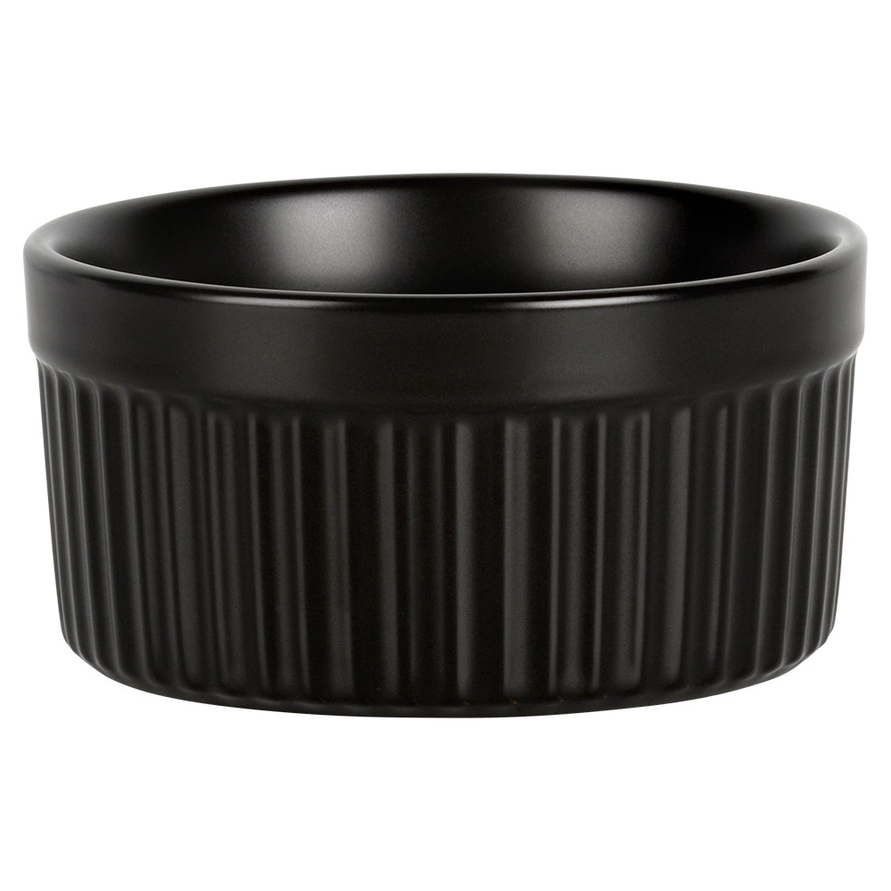 Matte black with a ribbed design stands out when serving desserts, snacks, and sauces—from kitchen to table.