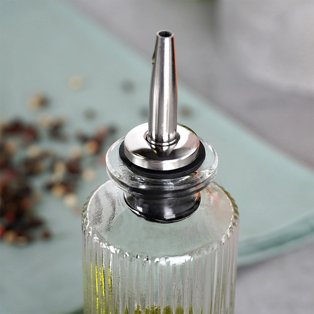 This compact 160 ml glass bottle is a perfect choice for everyday seasoning and elegant table service. The clear, high-quality glass with a ribbed texture highlights the color and clarity of the contents, while the stainless-steel pourer cap with silicone ensures precise dispensing without dripping or mess.