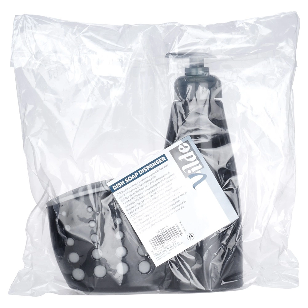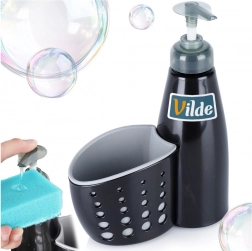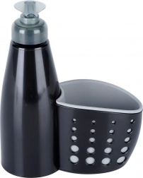 A practical dish soap dispenser with an integrated sponge holder keeps your sink area clean and organized. The stylish black finish with gray details suits any kitchen. 370 ml capacity, compact dimensions, and precise pump dosing ensure convenient dishwashing and quick access to your tools.