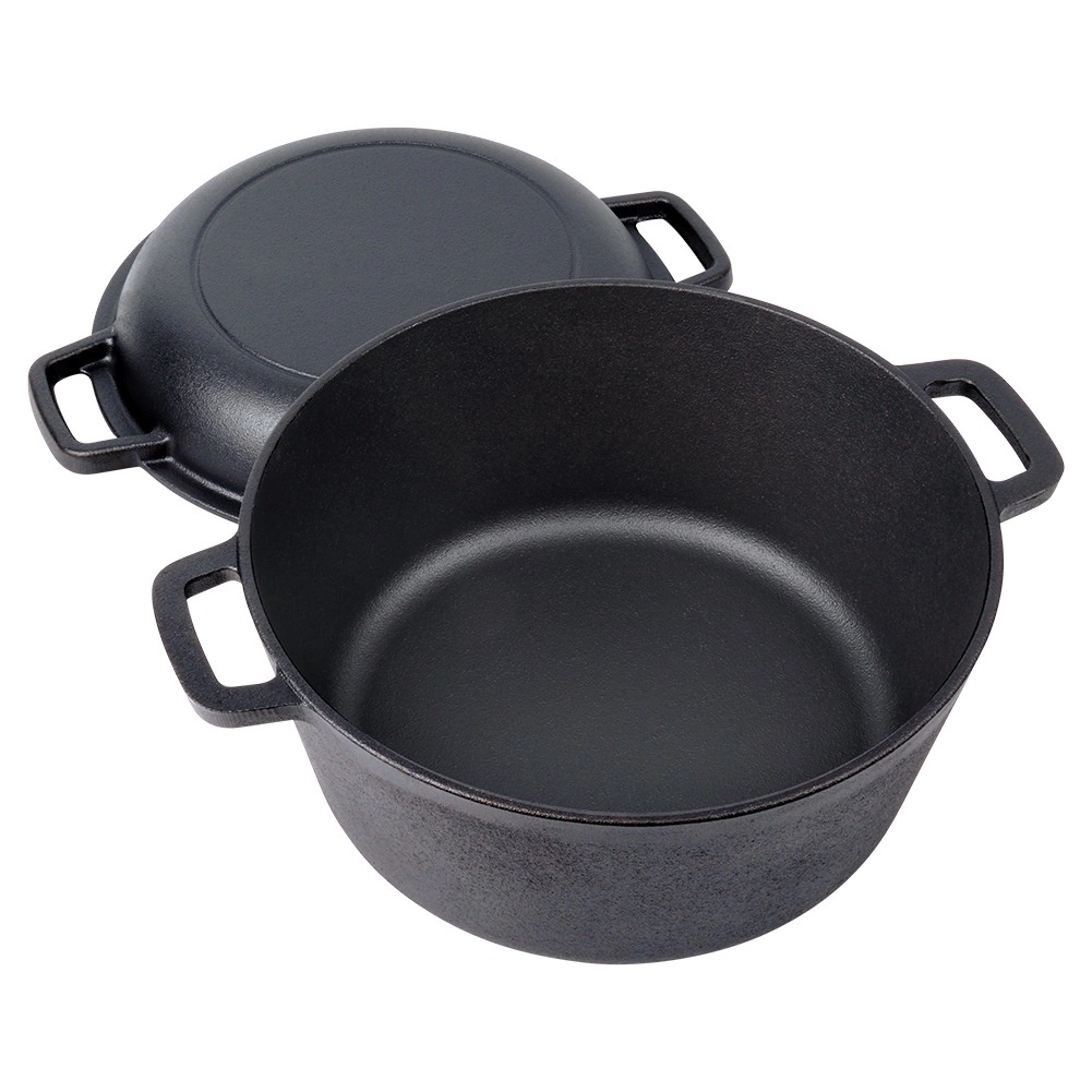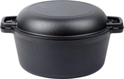 Cast-iron pot with a 4.5 l capacity and a practical lid (1.6 l) that you can also use as a shallow pan or small roaster. All-cast-iron build excels at conducting and retaining heat, ensuring dishes are juicy, evenly cooked, and stay warm longer when served.