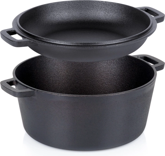 The lid serves as a shallow pan or baking dish (1.6 l). You get two separate pieces of cookware for cooking, baking, and serving.