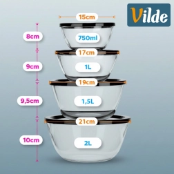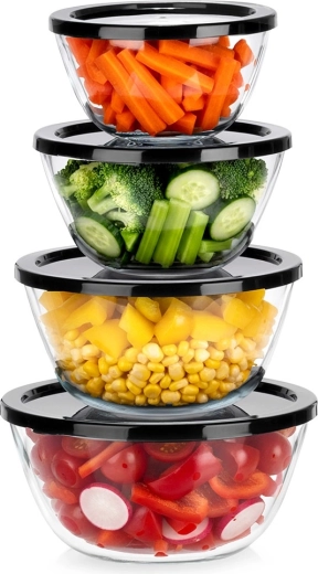 This set of glass bowls with lids is ideal for prepping, serving, and storing food. The clear glass always gives you a view of the contents, while the black lids help maintain freshness and prevent odor transfer in the fridge.