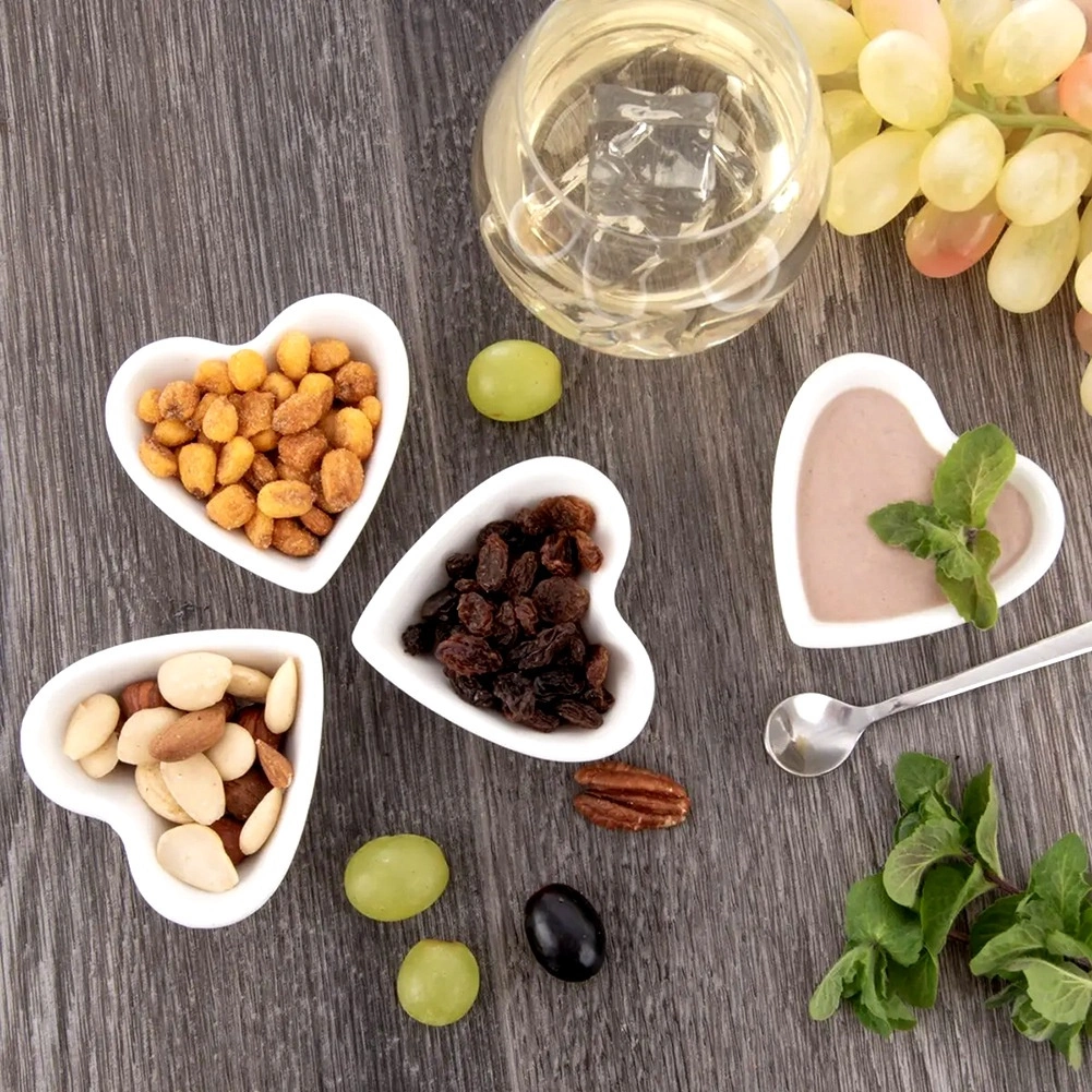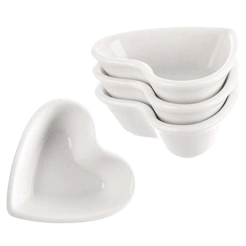 Add a touch of elegance to your table with these heart-shaped porcelain bowls. Perfect for small bites, dried fruit, nuts, sauces, dips, and mini desserts. Thanks to their compact size and stackable design, they save space while adding a decorative accent to any table.