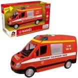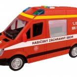 Become a little hero with this detailed toy – a friction-powered fire van with light effects and real Czech announcements from the crew and dispatch. The 1:16 scale model offers fun thanks to the friction drive and siren sound. Batteries are included in the package.