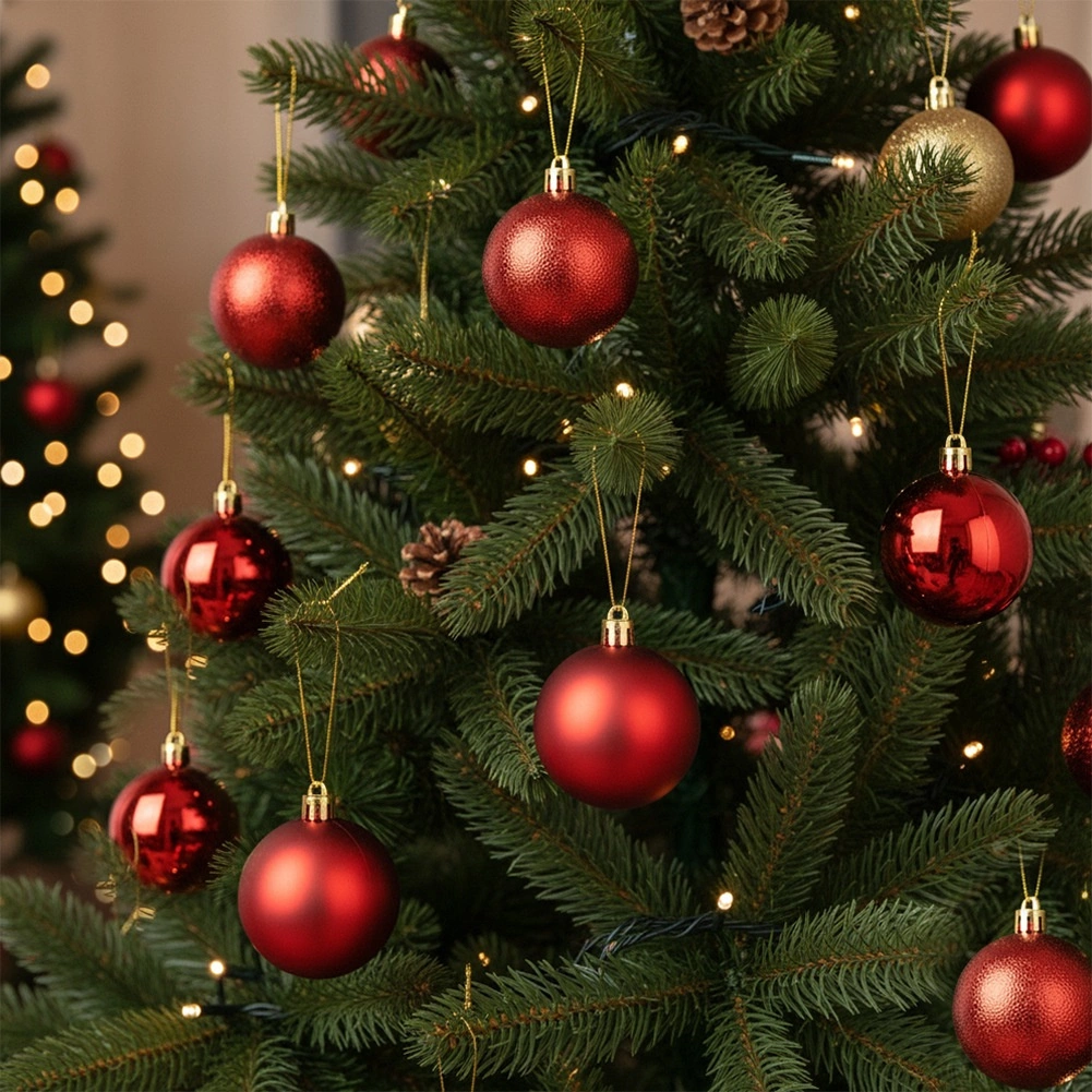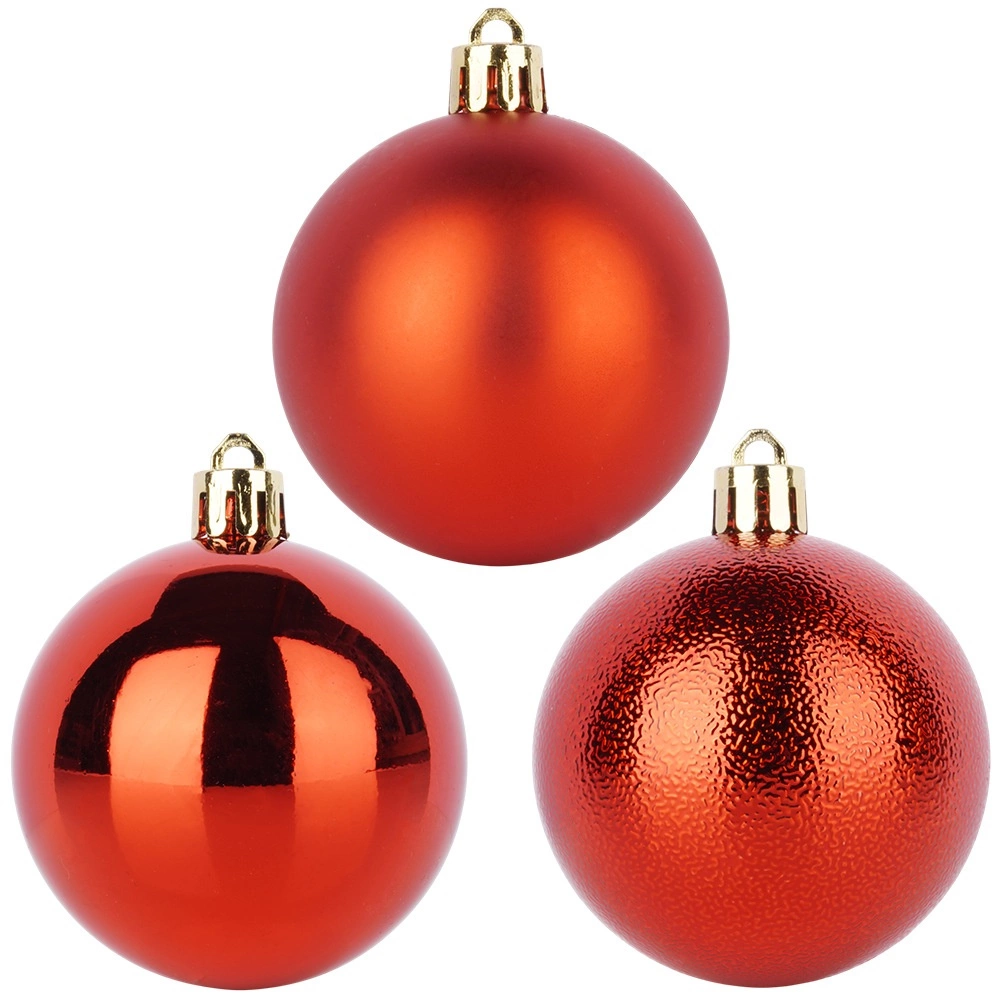Add flair to your decor with this versatile set of red baubles, perfect for the Christmas tree, wreaths, garlands, and festive arrangements throughout your home. The combination of three finishes—matte, glossy, and with an elegant embossed texture—brings visual variety and harmony.