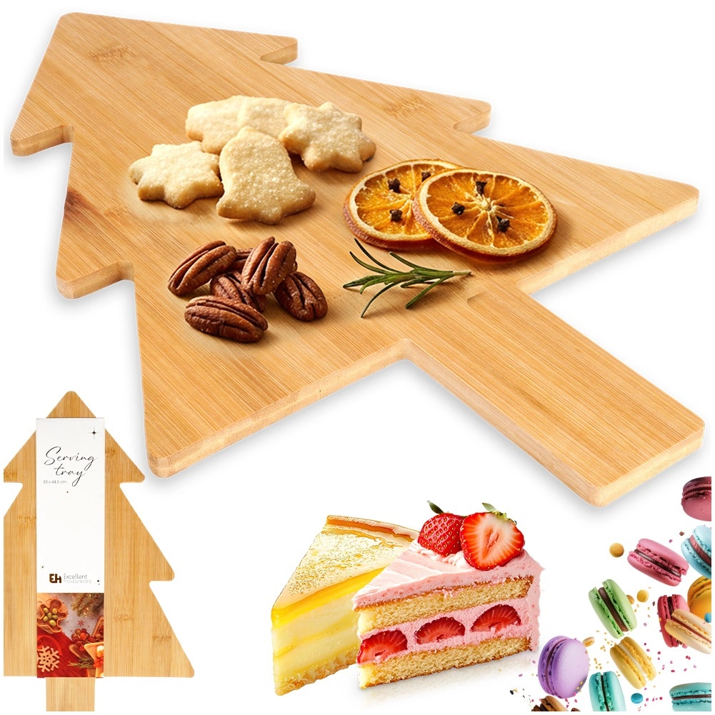 Bring a festive atmosphere to your table with this bamboo board shaped like a Christmas tree. The practical size of 44.5 × 30 cm offers plenty of space for eye-catching presentation of your favorite treats while adding an attractive touch to your table setting.