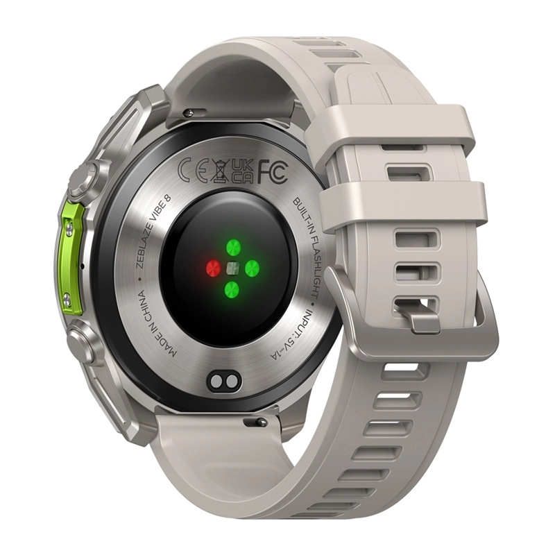Practical extras include a built-in LED flashlight, music and camera control, weather, alarm, and activity reminders. With the FitCloudPro app, you get detailed analytics and more watch faces. Vibe 8 is built to last — and to keep up with your pace.