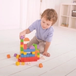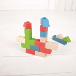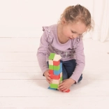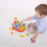 The Bigjigs Baby wooden construction set offers a unique combination of wooden blocks and plastic connectors, allowing for solid and stable buildings. The blocks come in various shapes and colors and are ideal for children's small hands.