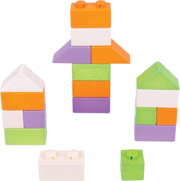The interlocking blocks combine traditional wooden blocks with innovative plastic connectors for easy assembly.