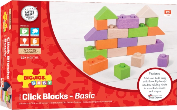 Introducing the Bigjigs Baby Wooden Interlocking Blocks, offering unlimited creative possibilities for expression. This medium set includes 20 wooden blocks in various shapes and colors. Interlocking blocks are ideal for children from one year old.