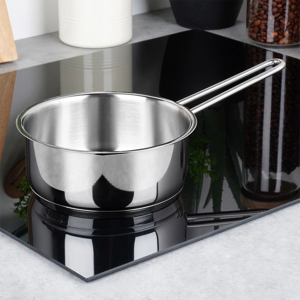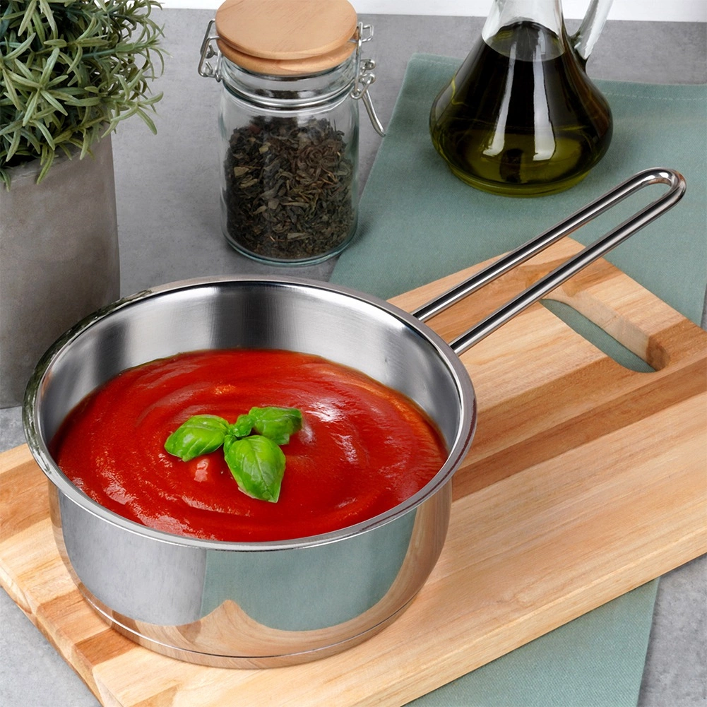 A stylish and functional saucepan made of quality stainless steel, perfect for heating, cooking sauces or sides, and for quick cooking on smaller hobs. Thanks to the multi-layer acute-thermal base, it stores and distributes heat brilliantly, saving energy and shortening cooking time. It lets you cook with a small amount of water and fat without unnecessary loss of flavor, vitamins, and minerals.