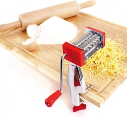 Traditional mechanics and an ergonomic crank guarantee easy operation with minimal effort. The maximum dough sheet width for rolling is 6 cm, and the machine dimensions are 19 × 9 × 18 cm. Red accents on the handle and accessories add style to your kitchen. For long service life, we recommend not washing in a dishwasher.