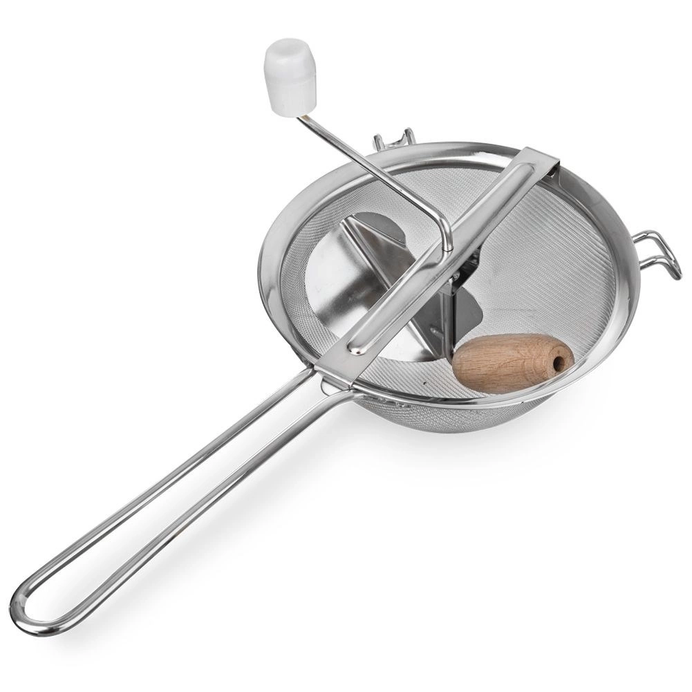 Wide kitchen use – ideal for tomatoes, plums, pumpkin, and cooked vegetables. Perfect for preparing homemade jams, mashed potatoes, sauces, creamy soups, baby food, dips, smoothies, and sorbets. The traditional mechanism ensures quick and even milling – just a few turns.