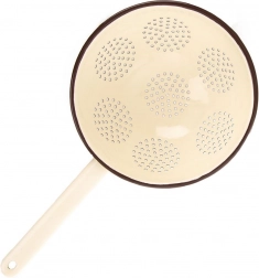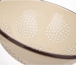 Traditional enamelled colander with a diameter of 22 cm and a long handle for comfortable draining. Made from quality steel with a durable enamel coating in a brown/beige finish. Safe for allergy sufferers, easy to clean and dishwasher safe. Ideal for pasta, fruit and vegetables.