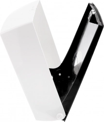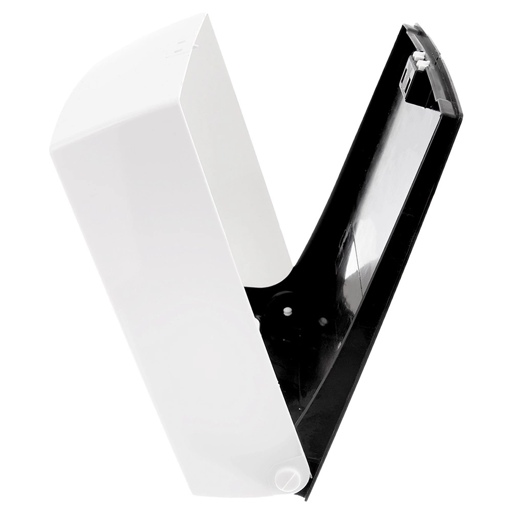 Practical wall-mounted dispenser for ZZ paper towels with a maximum width of 23 cm. The combination of a white front and black back looks elegant, and the dispenser ensures hygienic single-sheet dispensing, reduces paper consumption, and keeps the area tidy.