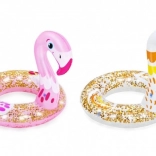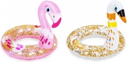 The swan-themed inflatable ring stands out with its glittering design and vibrant colors kids love. It is made of durable PVC and designed to withstand repeated inflating and deflating. The practical safety valve prevents unwanted air leakage.
