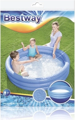 The inflatable pool from brand Bestway is made from durable vinyl material and features three identical inflatable rings for stability and comfort. With a capacity of 282 liters (74 gallons), it is spacious enough for children's activities in the backyard.