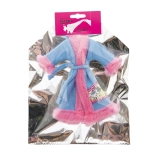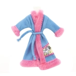 The bathrobe is made from plush fabric with a gentle nap and contrasting trim, keeping the doll “warm” after a bath or during evening reading.