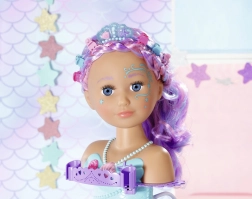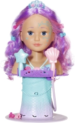 The BABY born Sister Mermaid styling head turns every bath into an undersea hairdressing salon. It attaches to the tub with sturdy suction cups, and removing the shell shower head activates the pump—water really flows when the head is in the water. The easily rotatable head with painted facial details invites make-up play and beauty-salon fun.