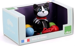 The minimalist design with a black body, white muzzle, and a movable spring tail provides visual and auditory stimulation with every step. The high-quality craftsmanship of Vilac, made in France, ensures safety and long-lasting durability.