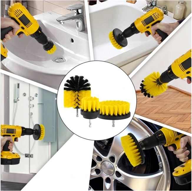 This set of cleaning brushes is an ideal accessory for your drill or screwdriver, allowing easy and efficient cleaning of various surfaces. The brushes are made of durable nylon and solid plastic, ensuring long-lasting durability and effectiveness.