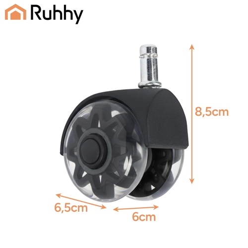 RUHHY casters bring comfort and safety for both your floor and chair. Thanks to the soft PU surface, they roll smoothly over laminate, hardwood, tile, and carpet without leaving scratches. The steel bearing and reinforced construction ensure long service life and reliability for everyday use.