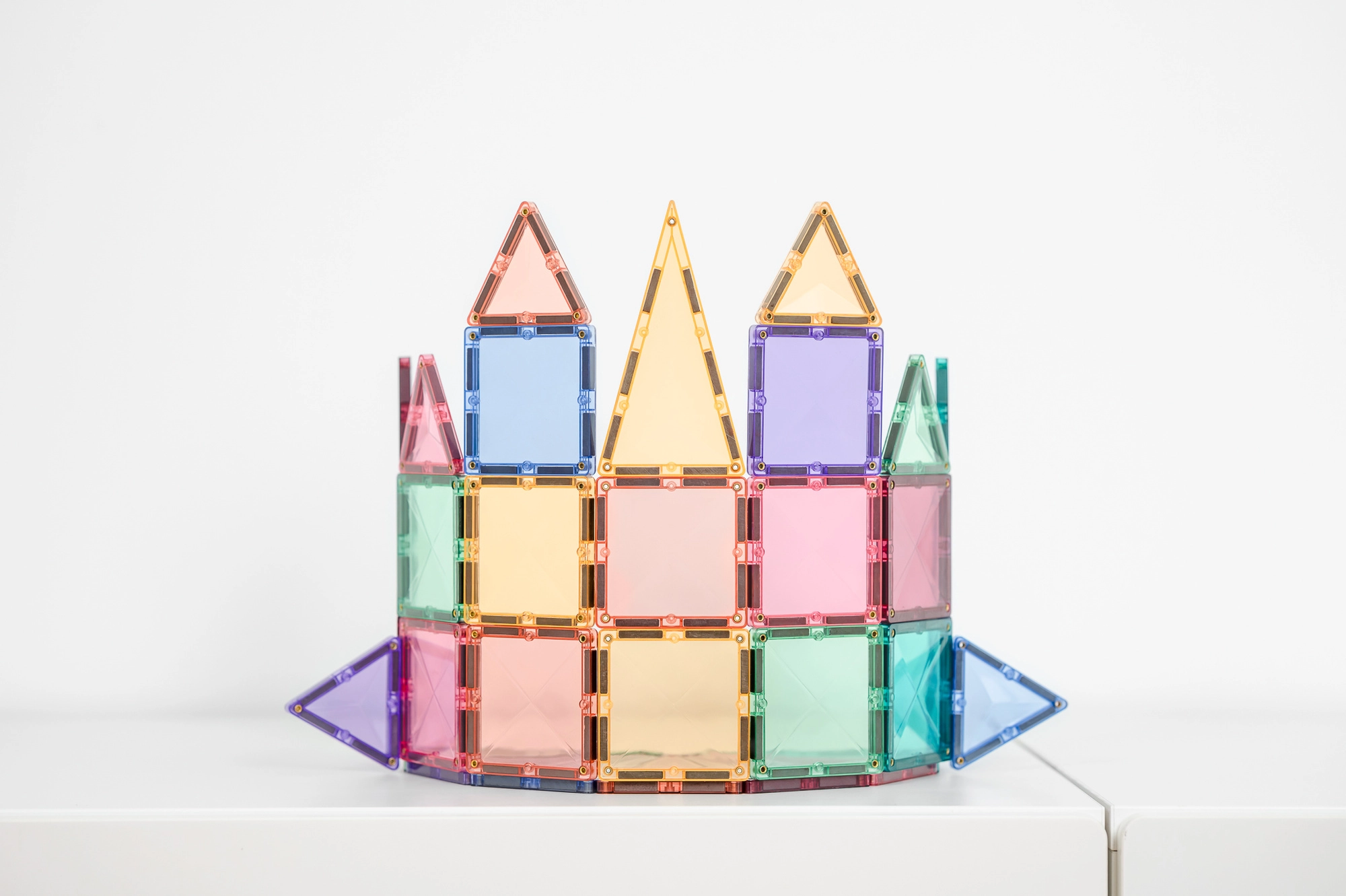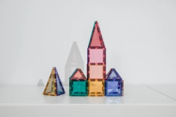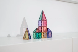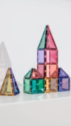 The CONNETIX Pastel Mini Pack is the perfect introduction to magnetic building. Children easily connect the transparent tiles and create castles, bridges, and rockets while naturally learning about geometry, magnetism, and balance. BPA- and phthalate-free premium ABS plastic and strong riveted joints ensure long life even with enthusiastic use.