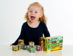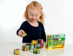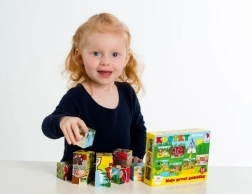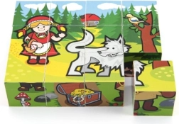 This set of 12 wooden picture blocks in a sturdy cardboard box brings children the joy of assembling images as well as free building. From the blocks you can put together 6 charming fairytale scenes — from Little Red Riding Hood to Hansel and Gretel — and also build chimneys, castles, or pens for animals.