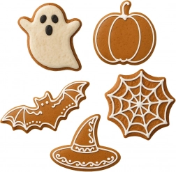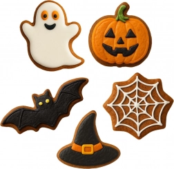 Ghost, pumpkin, bat, witch hat, and star – a colorful mix of motifs gives your baking an original look from autumn through Halloween.