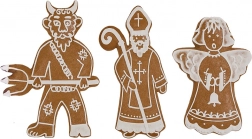 Angel, devil, and Saint Nicholas for playful, themed baking during Advent.